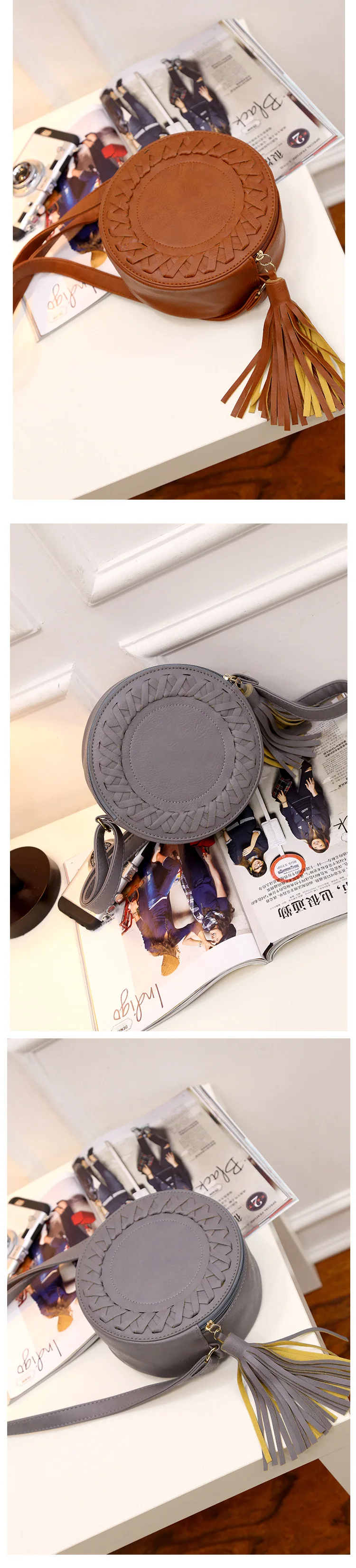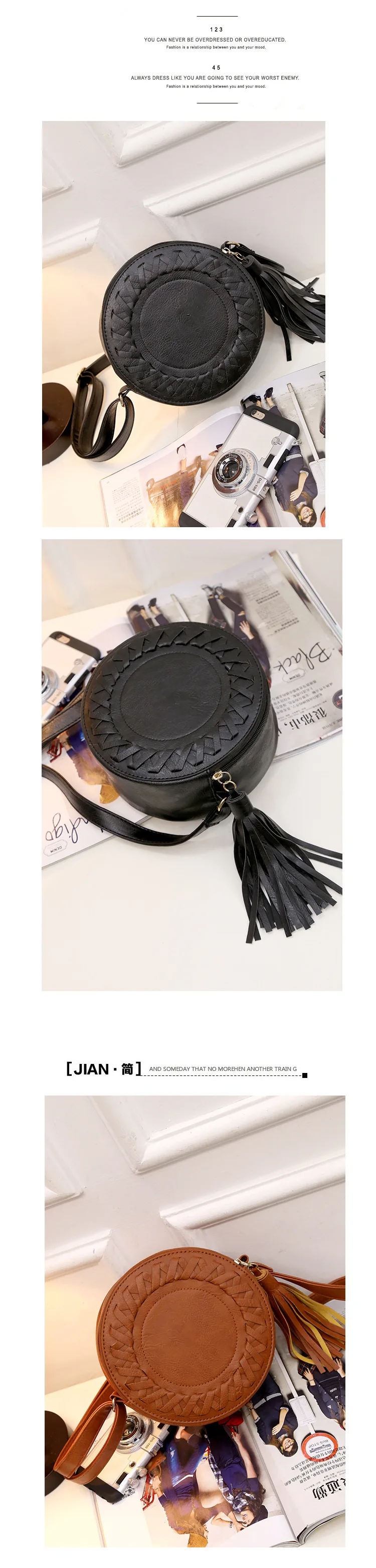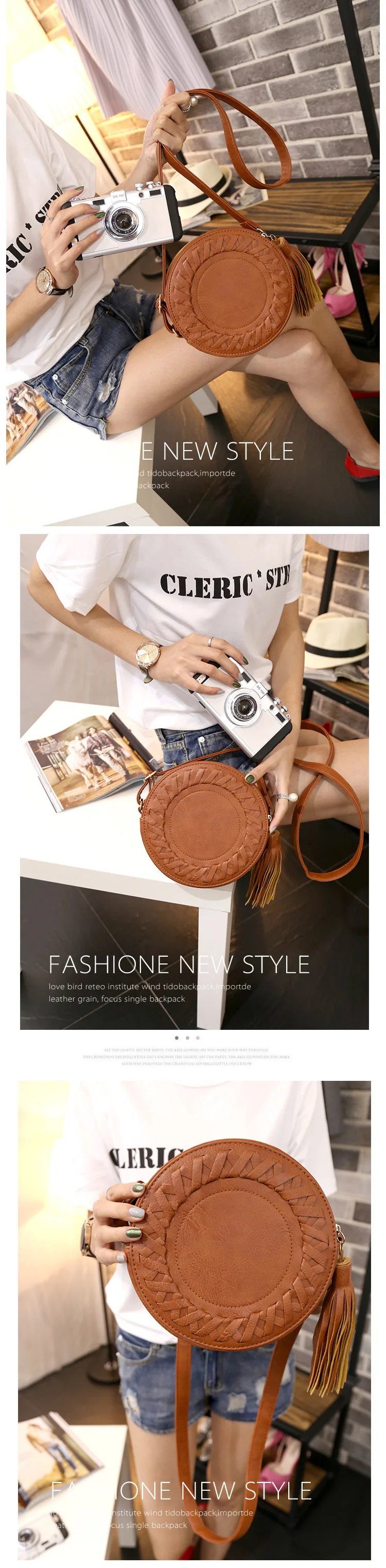 | Woman Round Casual Shoulder Bag Female Adjustable Braided Tassel Small Round Bag Lady Versatile Funny Bag Bolsa Feminina 2020 |