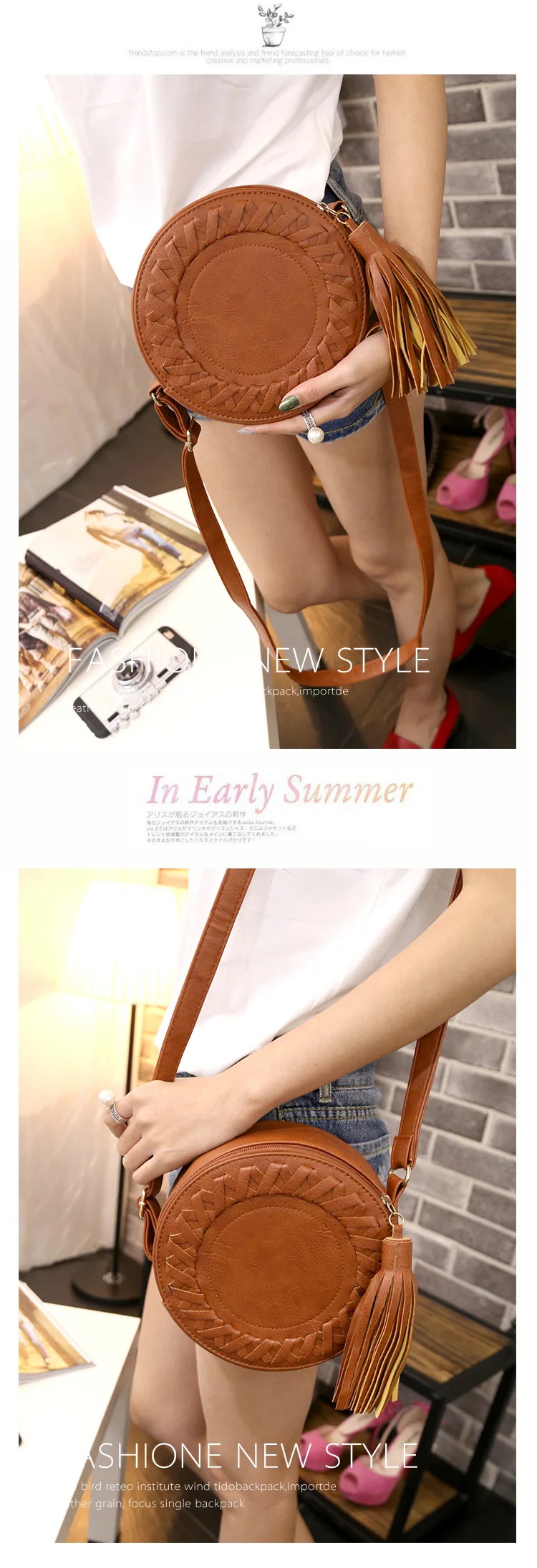 Best Price Comparison With Woman Round Casual Shoulder Bag Female Adjustable Braided Tassel Small Round Bag Lady Versatile Funny Bag Bolsa Feminina 2020