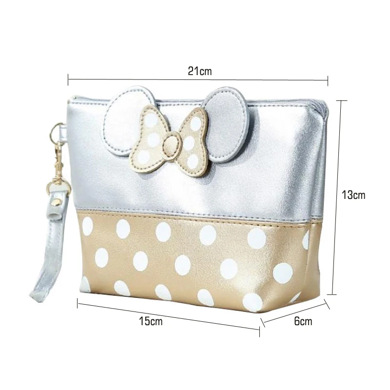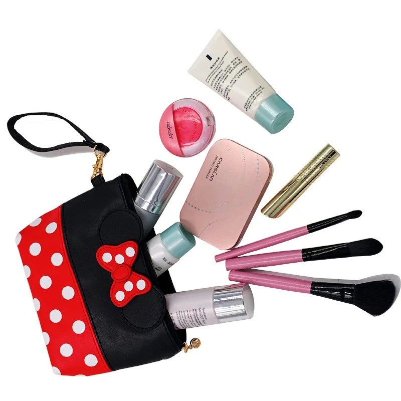 | SEREQI Mickey Bow Dot PU Travel Organizer Cosmetic Bag Fashion Makeup Bag Wash Toiletry Bag Quality Bag Organizer Beauty Case |