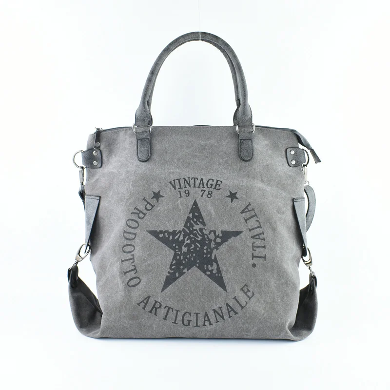 VINTAGE BIG STAR PRINTED CANVAS TOTE HANDBAG- Women's Big Size Multifunctional Travel Shoulder Bag Letters Messenger Bolsos B211