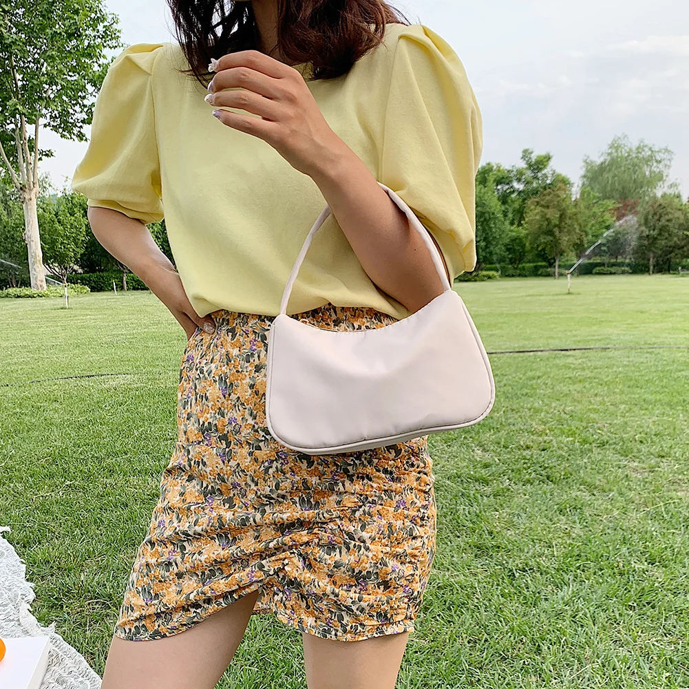 | Youth Ladies Simple Versatile Bags Women Casual Nylon Handbags Purse Ladies Solid Color Zipper Totes Shoulder Bag |