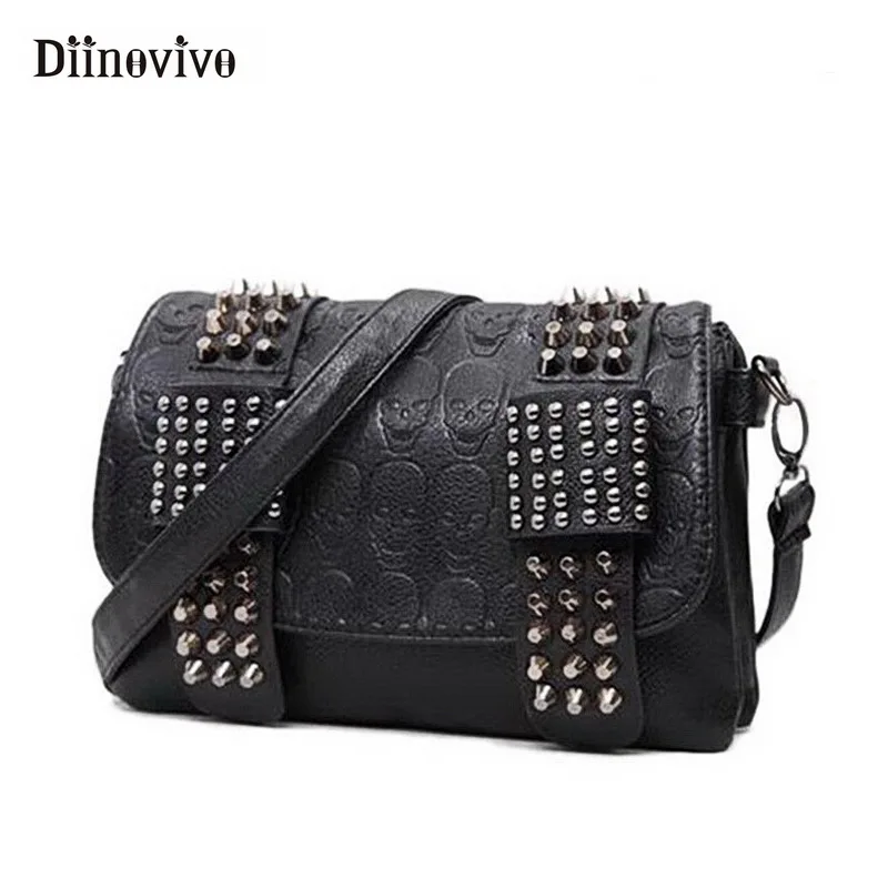 DIINOVIVO 2021 New Rivet Women Bag PU Leather Shoulder Bags Skull Bag Punk Crossbody Bags For Women Chain Messenger Bag WHDV0934