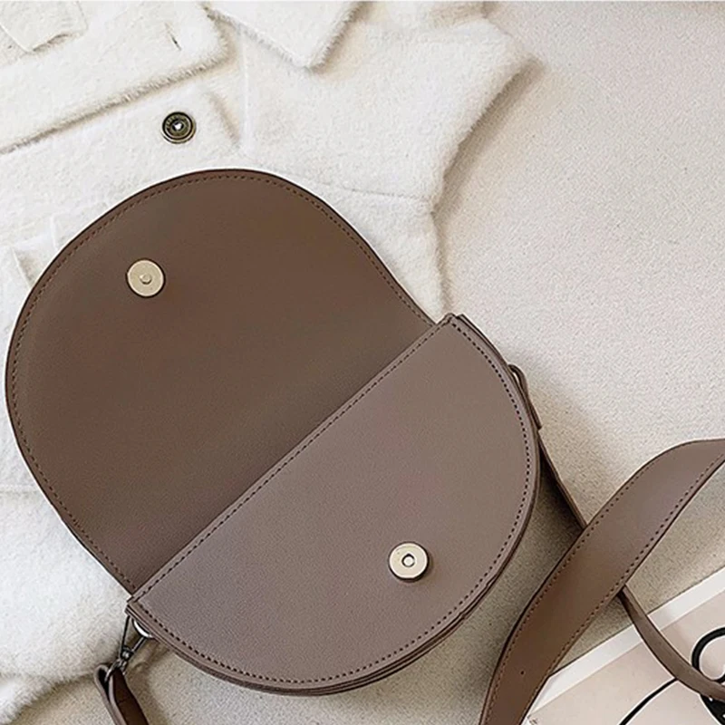 2020 New Women's Bag Leisure Saddle Bag Pu Solid Color Diagonal Bag Fashion Easy Matching Lady Handbags
