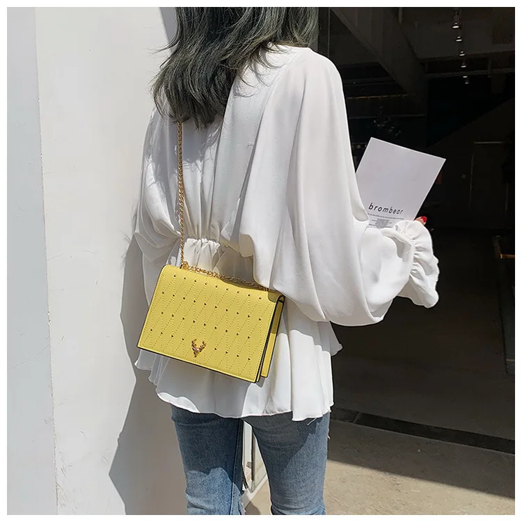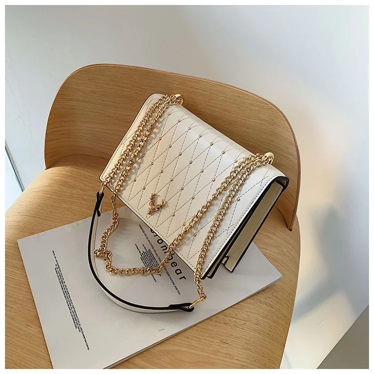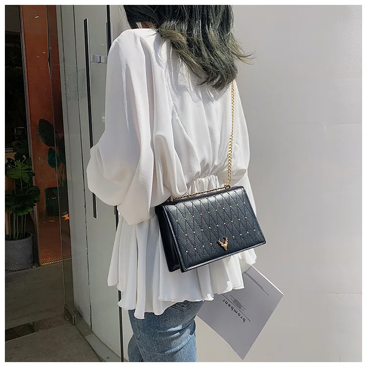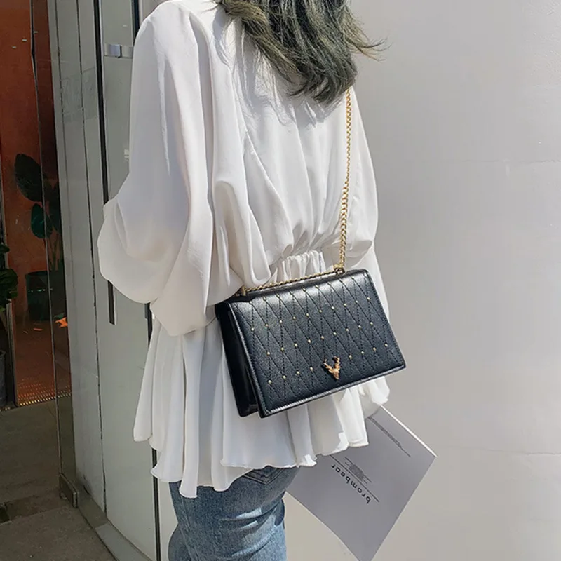 | Pu Leather Crossbody Bags For Women 2021 Rivet Chains Shoulder Messenger Bag Female Ladies Hand Sling Luxury Handbags Designer |