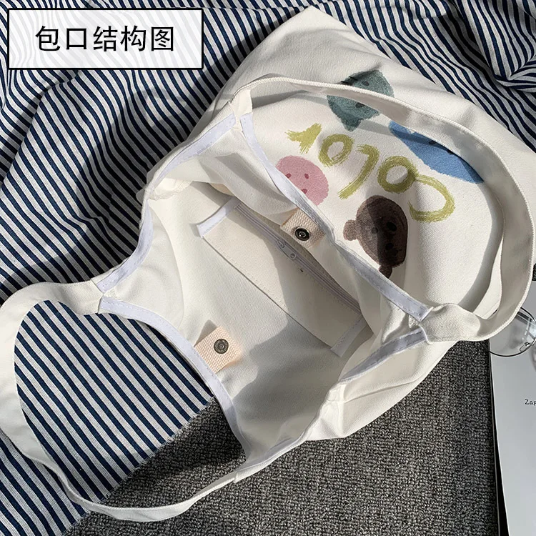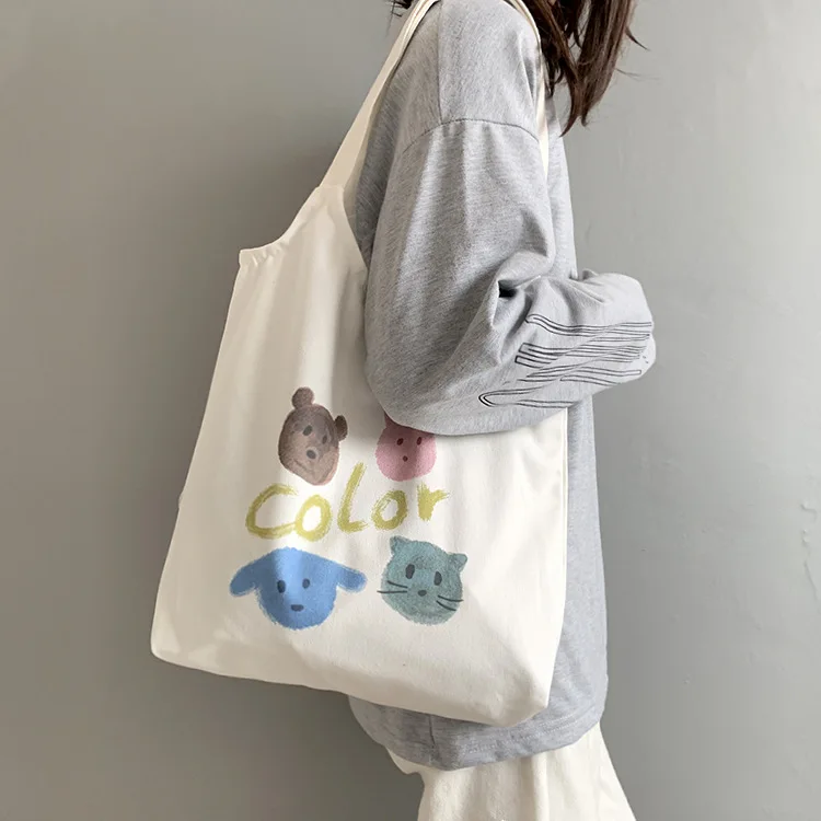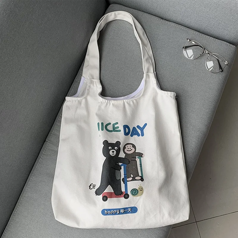 | New Japanese Tote Shopping Bag for Lady 2021 Literary Cartoon Canvas Shoulder Bag Women Students Cotton Cloth Eco Shopper Bag |
