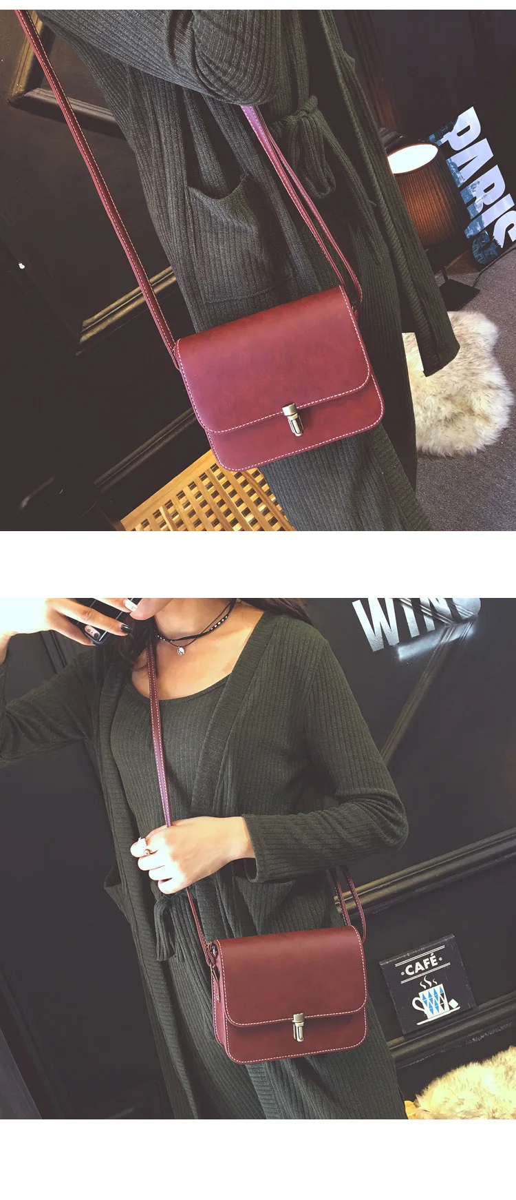 | Women Small Square Bag Ladies Car Line Fashion Handbag Retro Shoulder Bags Messenger bag Mobile Phone Packet Leather Handbag |