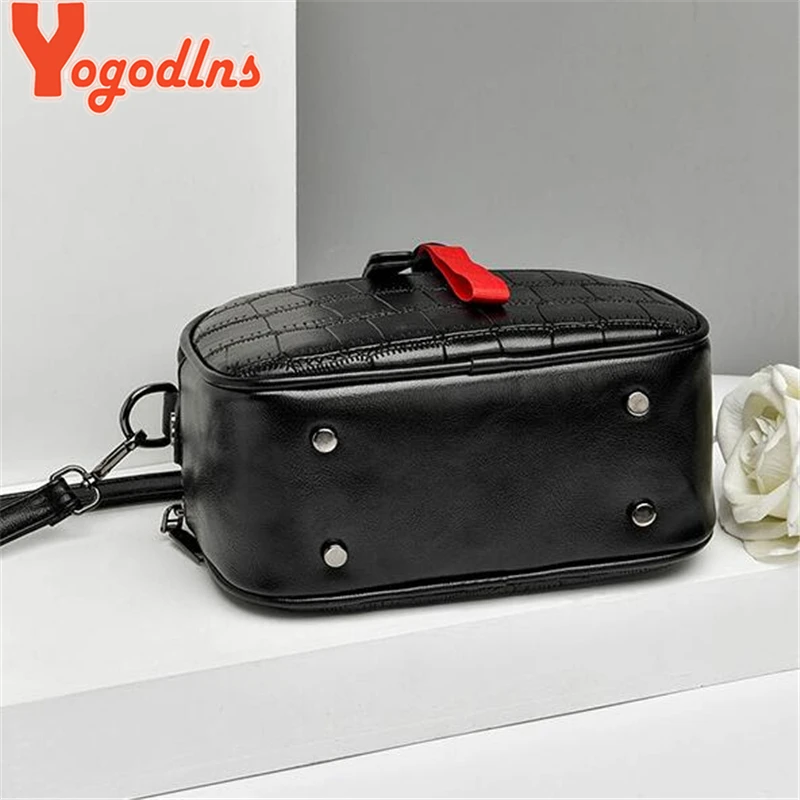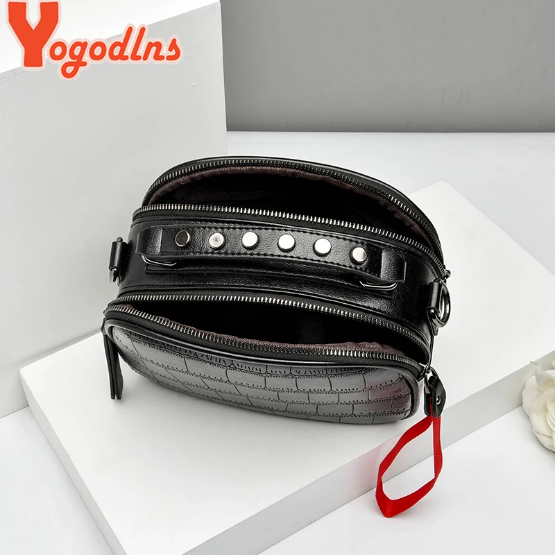 Yogodlns Leisure PU Leather Messenger Women Bag Ladies Shoulder Bags Contrast color Zipper Lattice Crossbody Bags Rivet Handbags