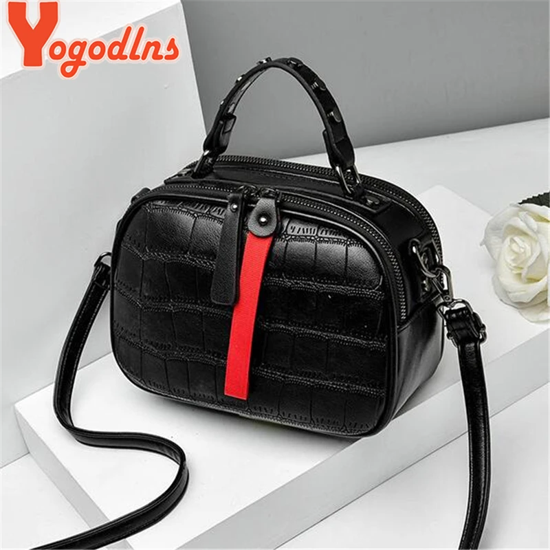| Yogodlns Leisure PU Leather Messenger Women Bag Ladies Shoulder Bags Contrast color Zipper Lattice Crossbody Bags Rivet Handbags |