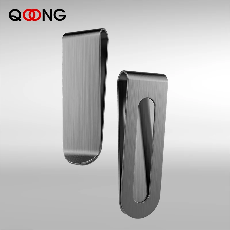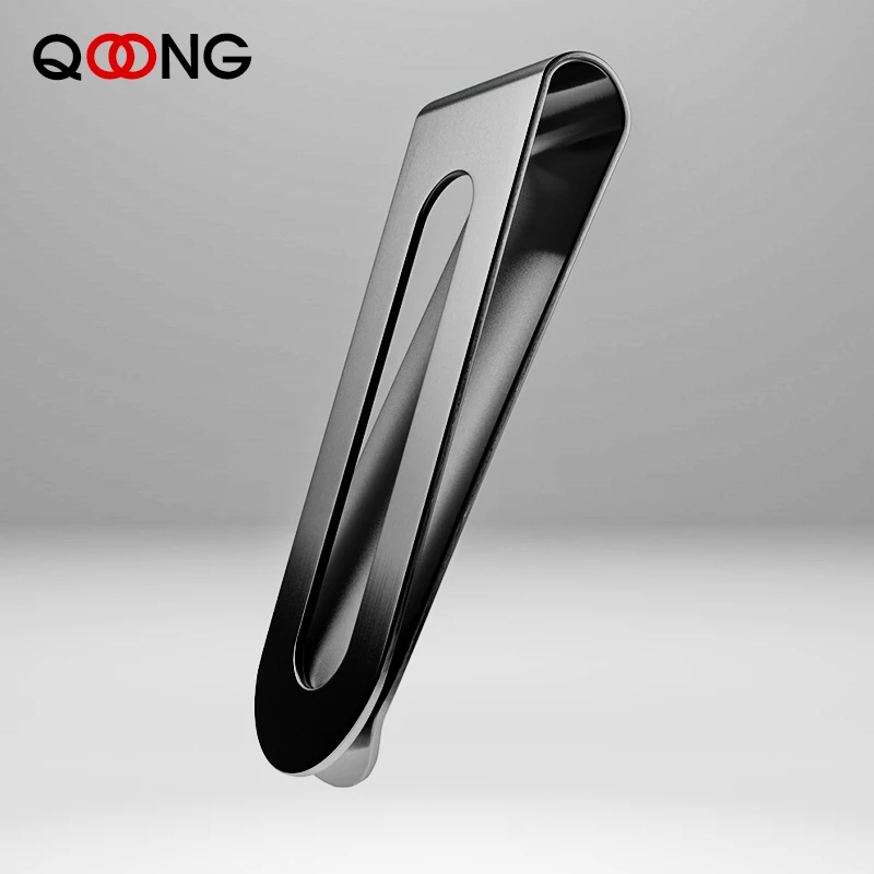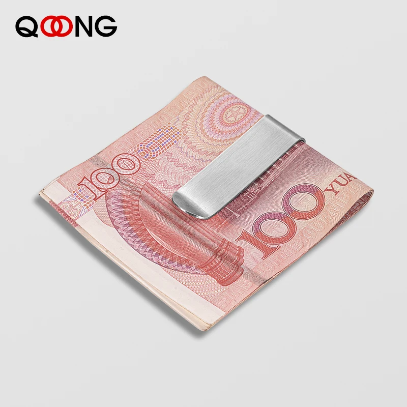 | QOONG Custom Lettering Stainless Steel Silver Color Slim Pocket Money Clip Business Credit Card Cash Wallet Bill Clip QZ40-008 |