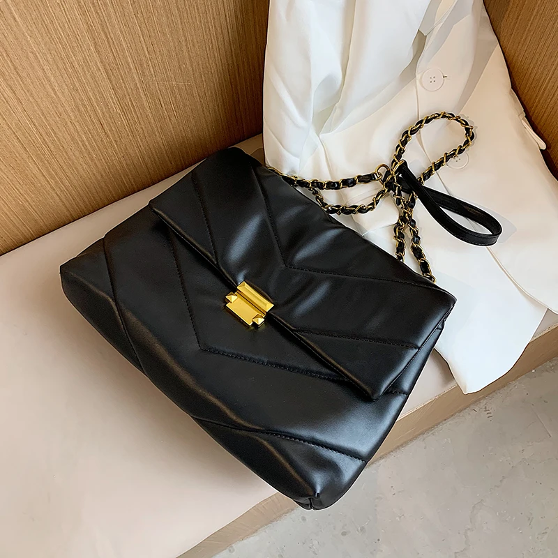 Best Price Comparison With Simple and large capacity PU soft leather handbag Female 2020 new fashion women's designer chain shoulder messenger bag
