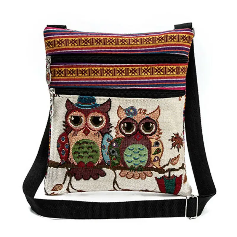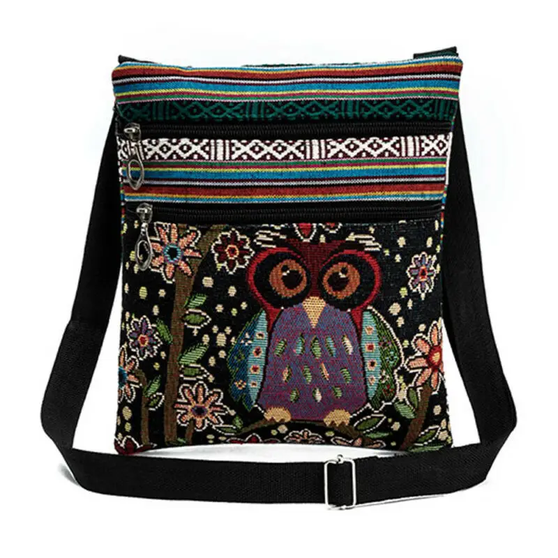 | Vintage Chinese National Style Ethnic Shoulder Bag Women Mini Handbag Owl Diagonal Embroidery Tote Lady Messenger Cross Body Bag |