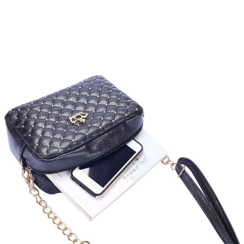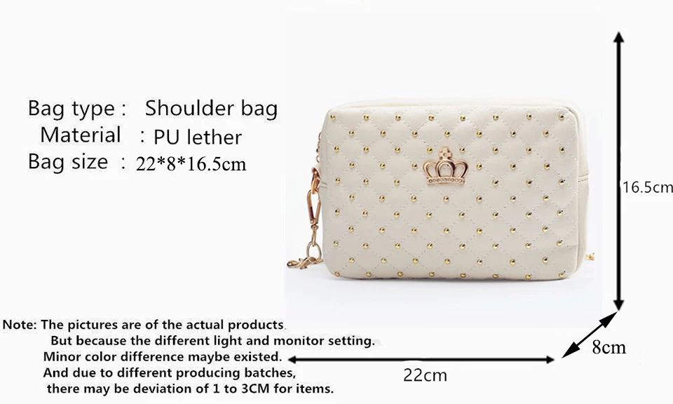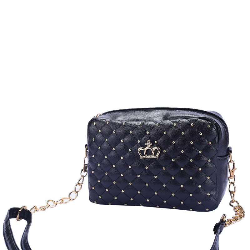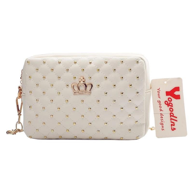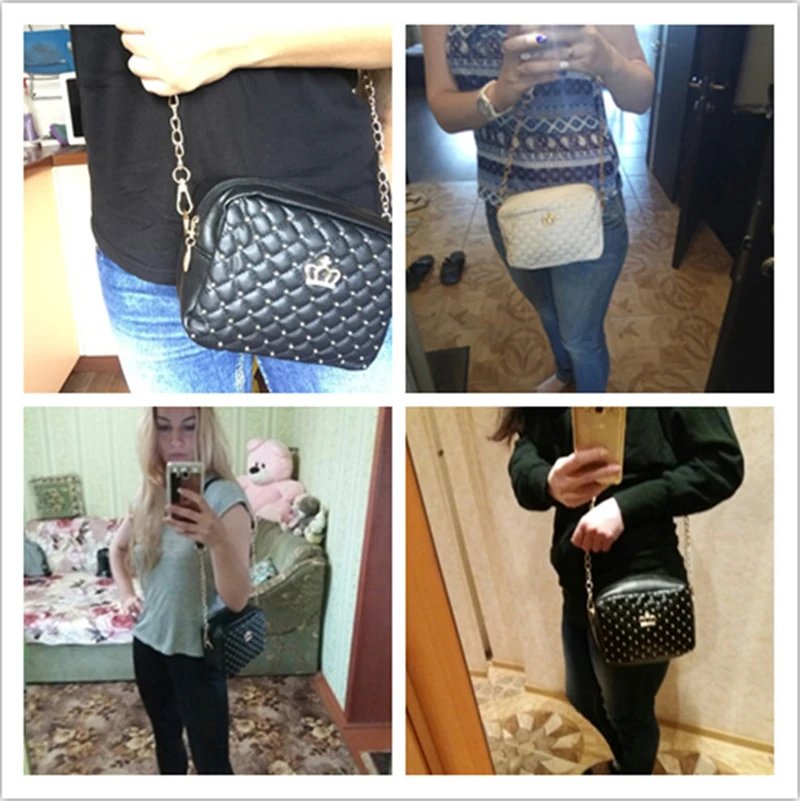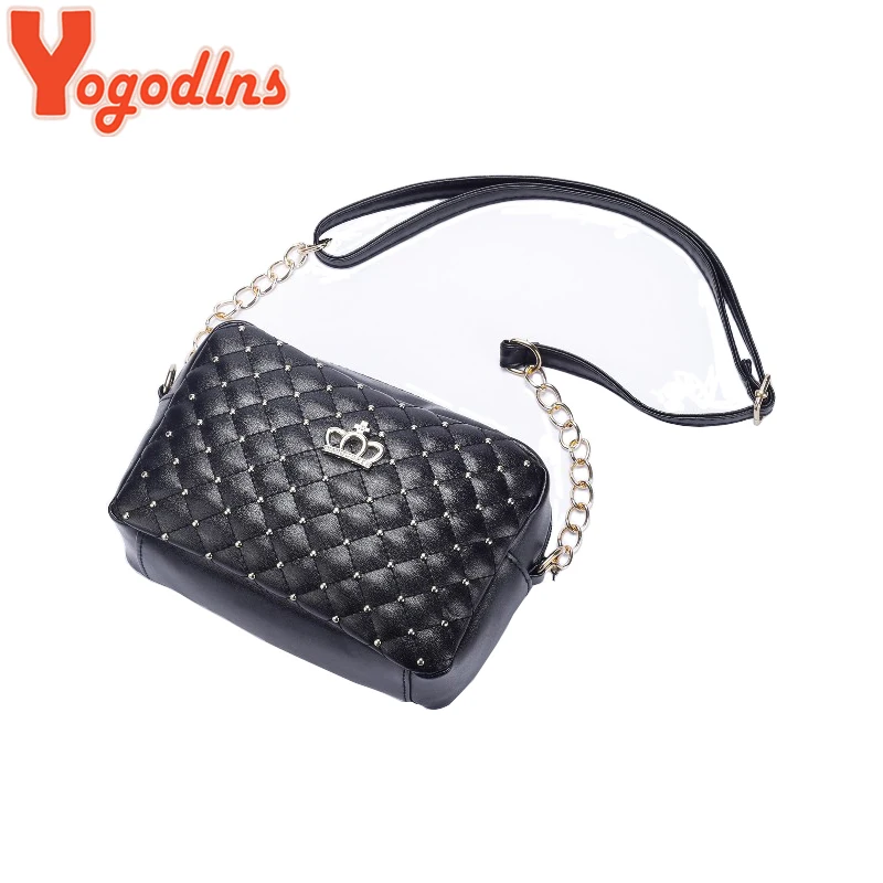 | Yogodlns Women Bag Fashion Women Messenger Bags Rivet Chain Shoulder Bag High Quality PU Leather Crossbody Quiled Crown bags |