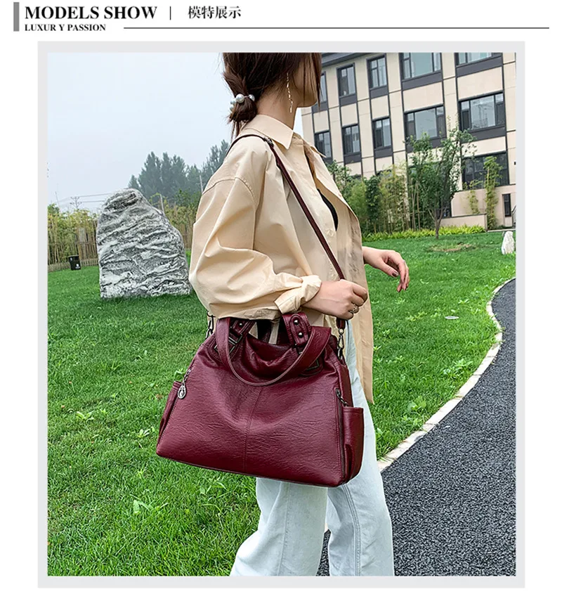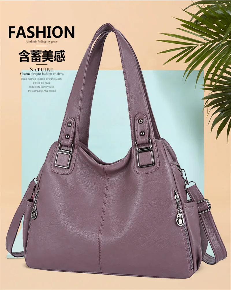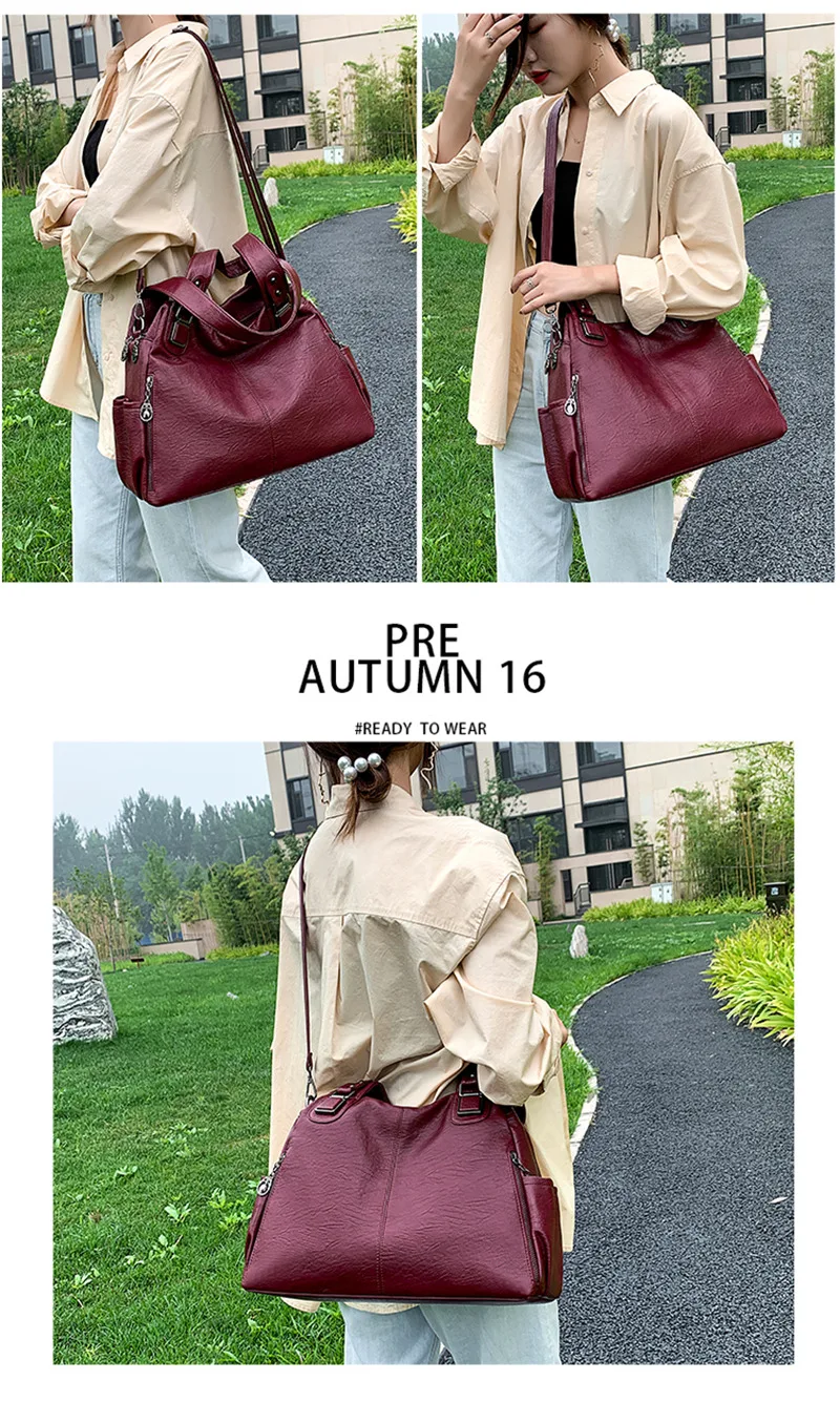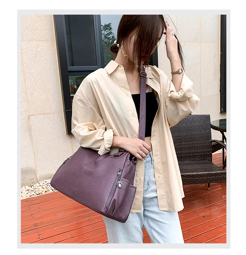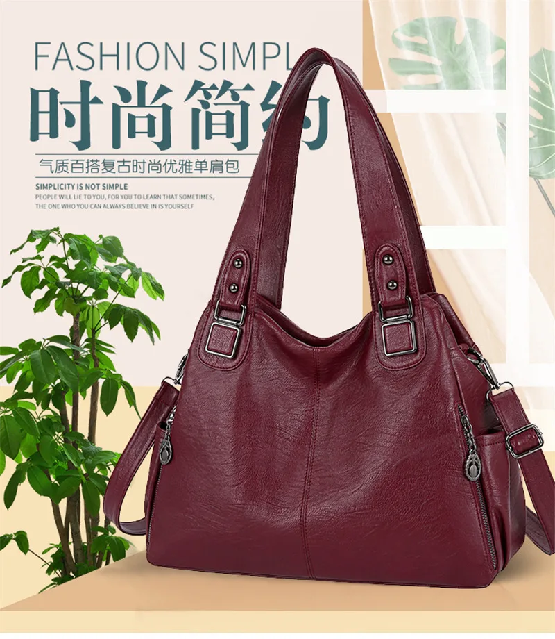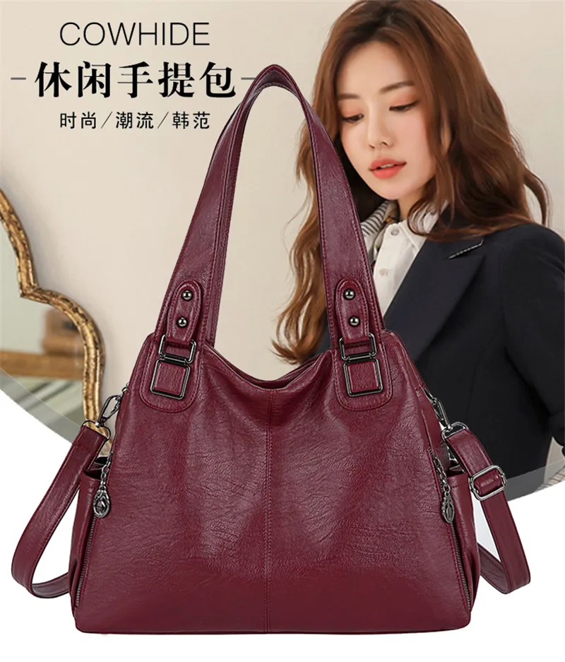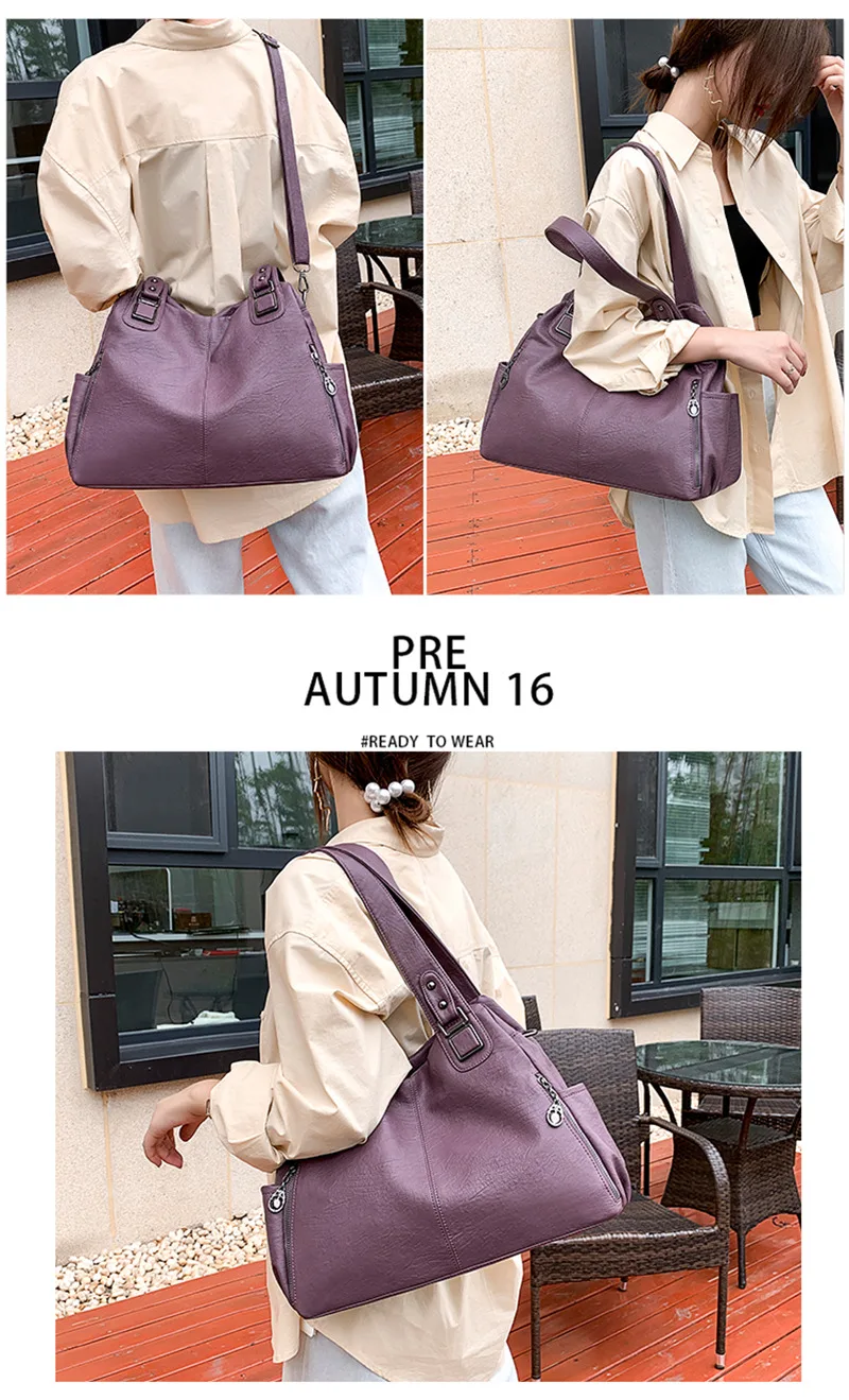 | Large Capacity Female Handbag Casual Totes Hobos Women Shoulder Bags Soft Vintage Leather Hobo Bags Lady Crossbody Messenger Bag |