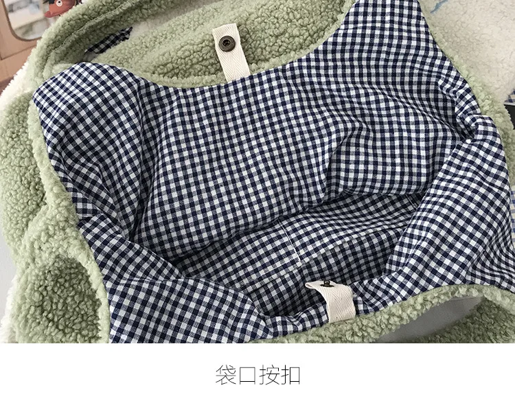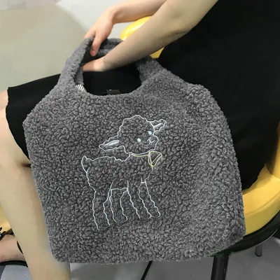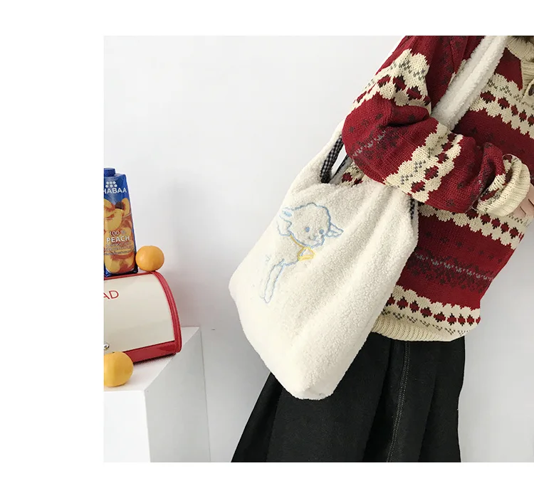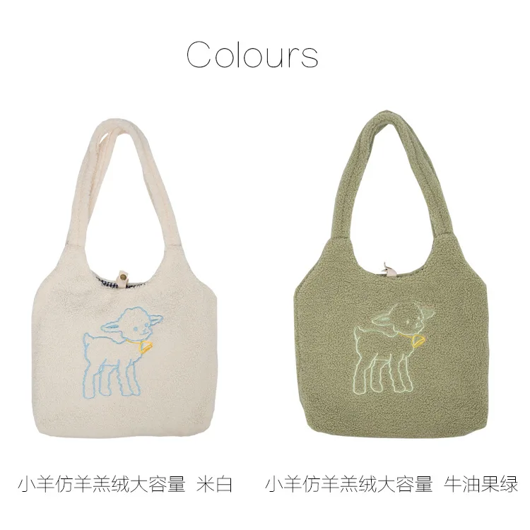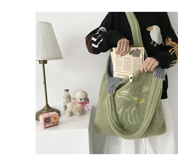 | Girls Large Capacity Embroidery Shopping Bag 2021 Women Lamb Fabric Shoulder INS Simple Canvas Eco Handbag Tote Cute Book Bag |