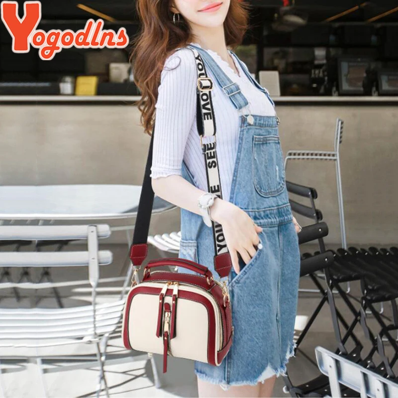| Yogodlns Fashion Stitching Shoulder Bag Women PU Leather Handbag Luxury Crossbody Bag New Chains Square Bag Lady Purse sac main |