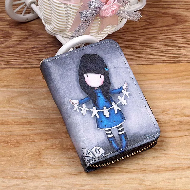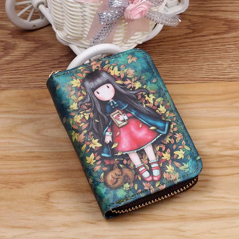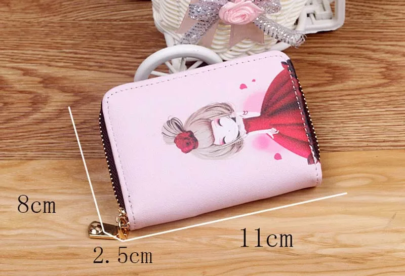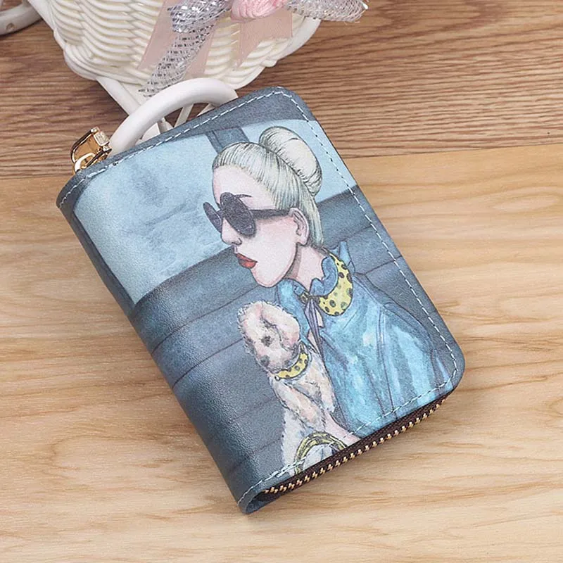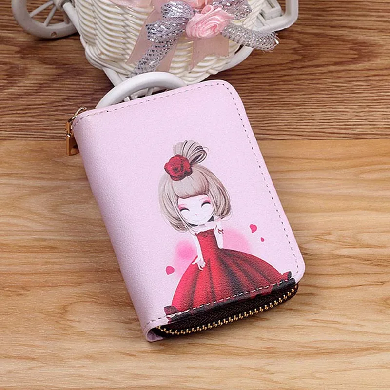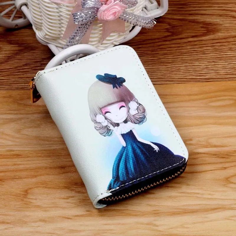 | New Fashion Printed Women Card Bag PU Leather Wallet Cartoon Girl Mini Zipper Clutch Bag Business Card Case Credit Card Holder |