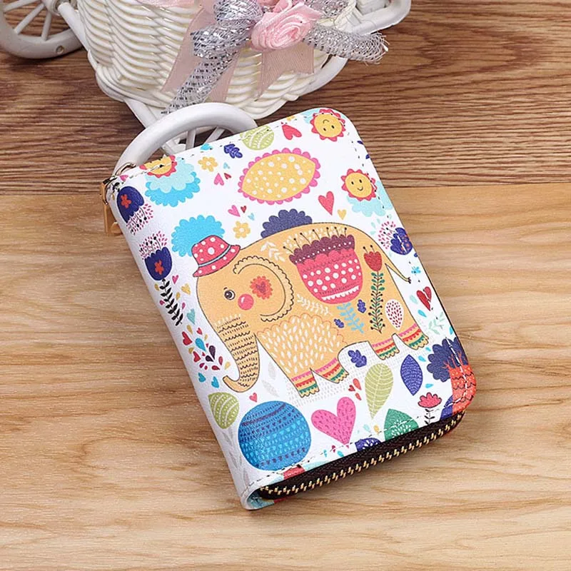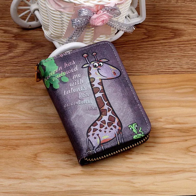 New Fashion Printed Women Card Bag PU Leather Wallet Cartoon Girl Mini Zipper Clutch Bag Business Card Case Credit Card Holder