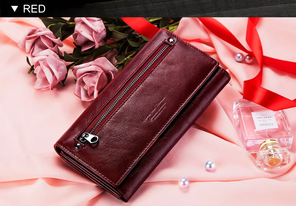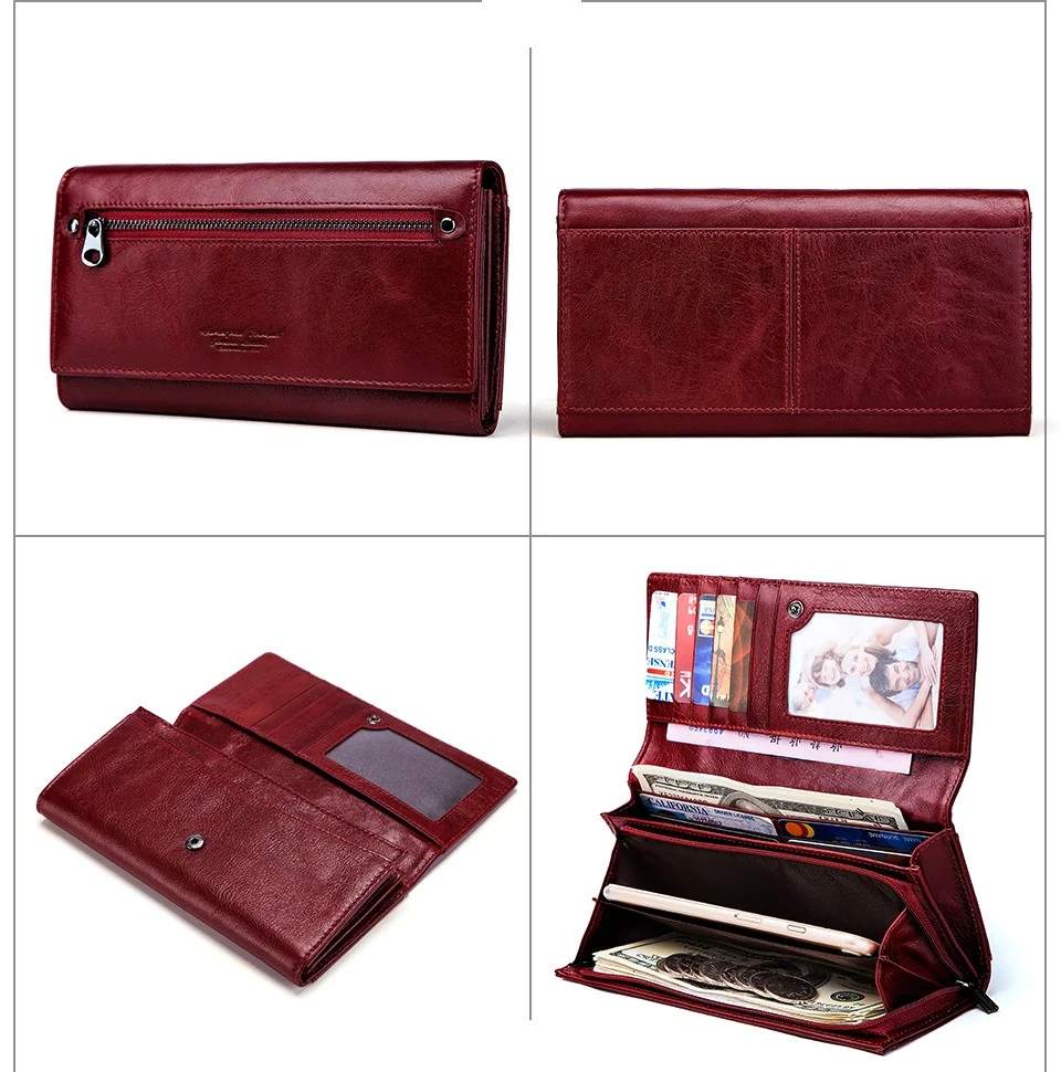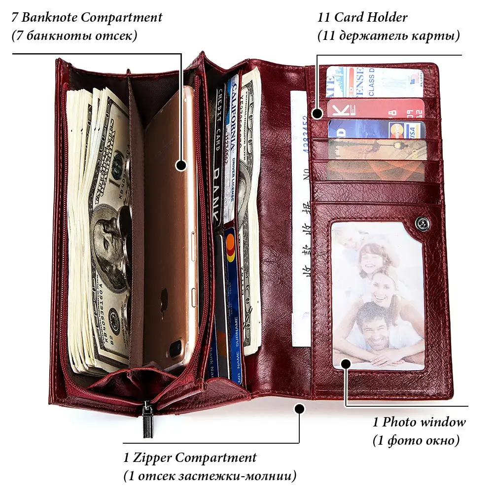 | GZCZ Women Clutch Wallets 100% Genuine Leather RFID Multiple Cards Holder Long Fashion Female Coin Purse With Phone Bag 2020 |