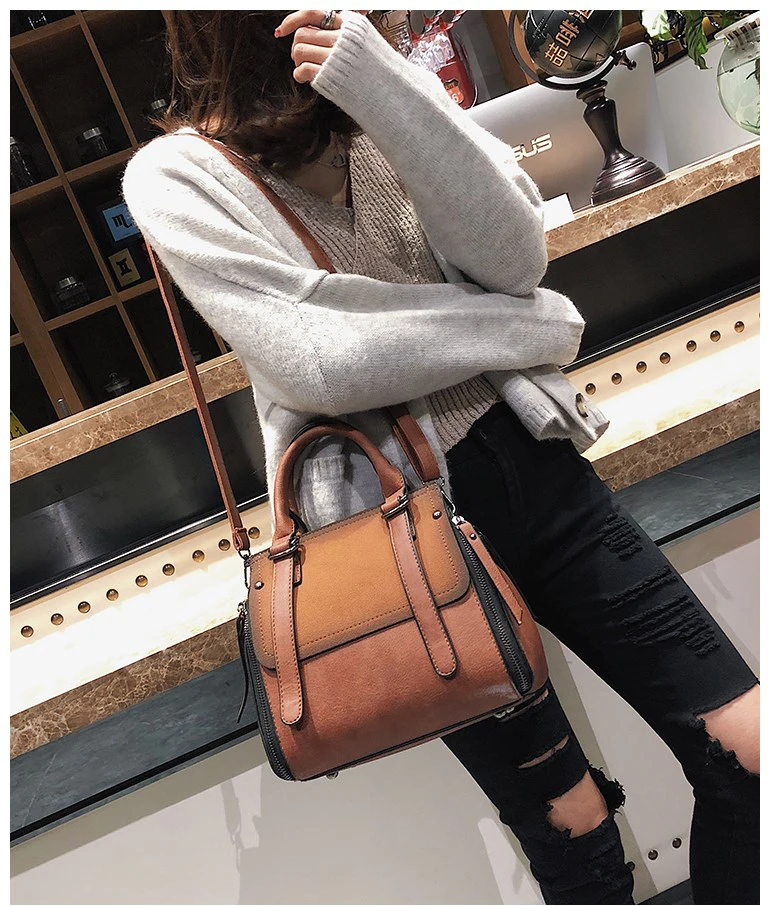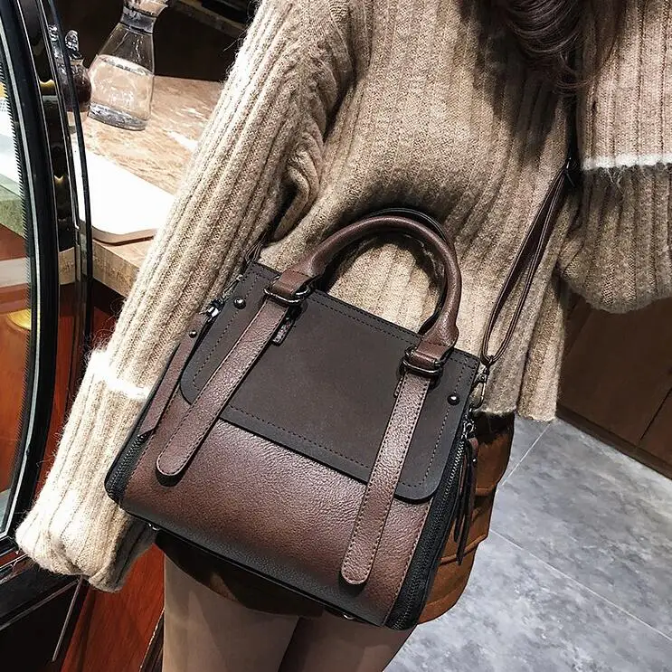 European style Fashion New Women Handbags 2020 High quality Matte PU Leather Portable Shoulder bag Ladies Hit color Big Tote bag